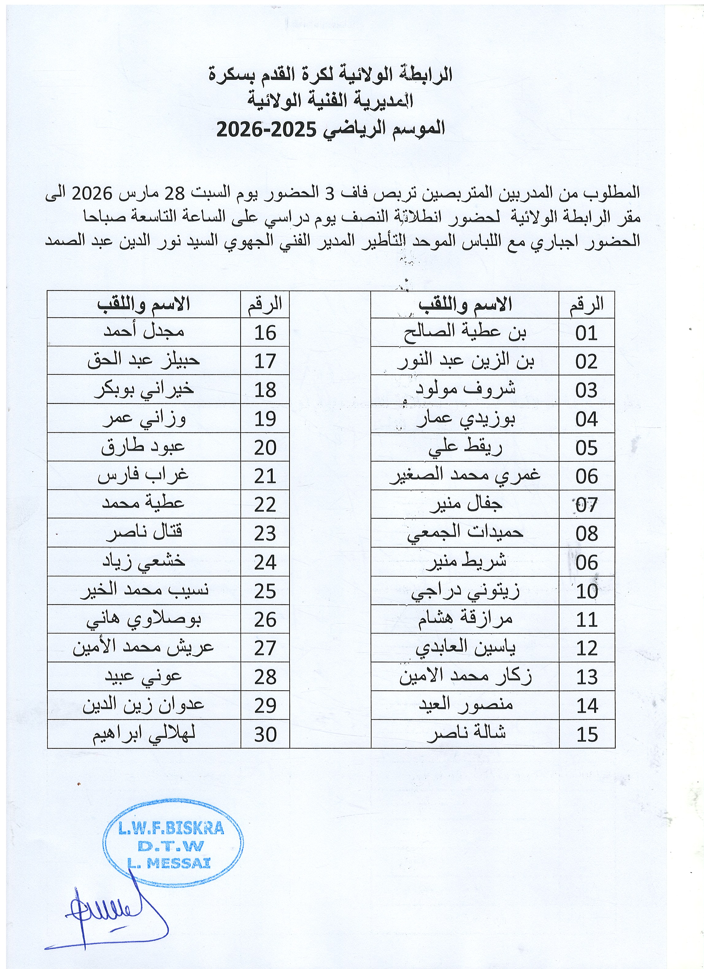 Tous droits réservés © 2016 - 2026 Ligue Wilaya de Football - Biskra.